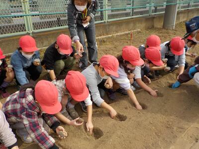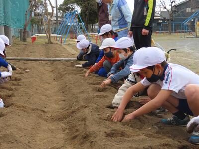 1年生~3年生の児童がジャガイモの植え付けを行いました。