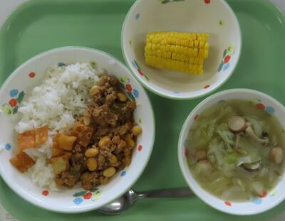 今日の給食のメニューの一つとして、1~6年生・教職員のみんなで美味しくとうもろこしをいただきました。