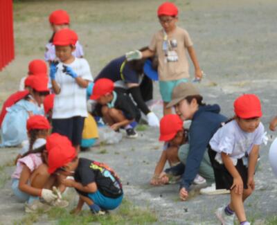 1学期間お世話になった学校の校庭へ感謝をこめて、そして、2学期に行われる運動会に向けてみんな一生懸命に活動していました。
