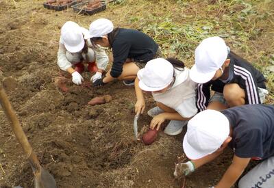 共和小の4~6年生がサツマイモ掘りを行いました。