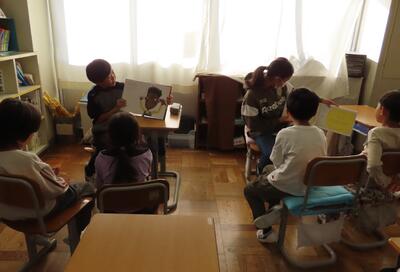 上の学年はこの日のために読み聞かせの練習をしてきてくれました。練習の成果もあって、下の学年はとてもよく聞いていました。
